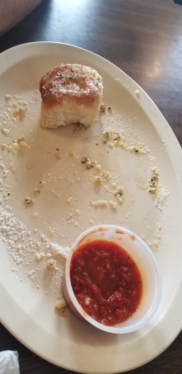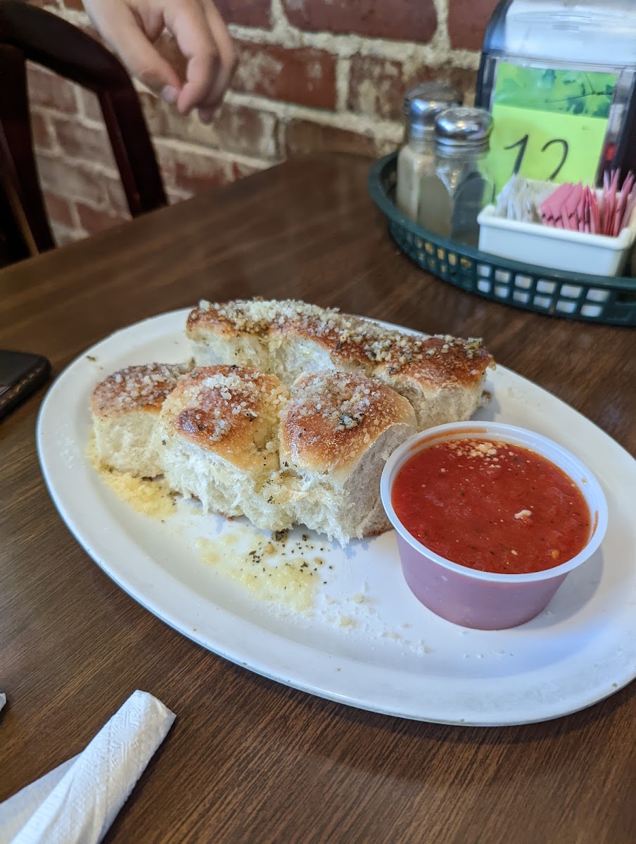 It's a small place , if you are looking for parking good luck , use public purking behind the building, to the side of it it's all for the business next to it. So you have to walk few small tables with wooden chairs paintings on walls and a huge TV . It's very loud but you will be able to hear yourself think. The ar wfew booths as well . The naked brick wall gives it a bit of a style , few empty bottles on shelf are cute , the deer head is a nice touch. The aroma of baking pizza makes your mouth water . The kitchen is tiny with all that you expect . The staff is very friendly, as I am writing this they glance at me . Lol . The bottle of cleaner with a rag is laying on the table , I guess they use the same rag for it all . A bunched up napkin is holding up the table leg . It's cute in a "we are the family type of way" All in all it's a nice place if you have a craving for some Italian .